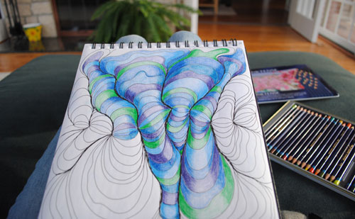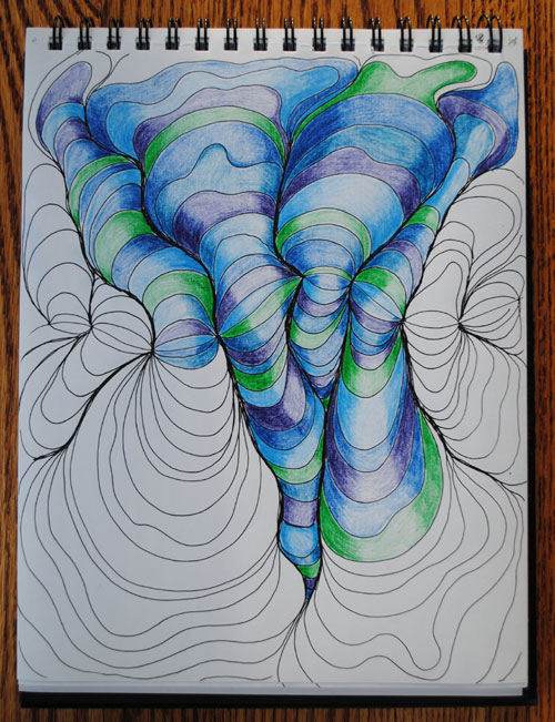 I was searching online a few days ago looking for a picture of an octopus… I had a sudden desire to draw one (yes I know I am weird but my days have been filled with tricky coding and I wanted to soothe my mind with something visual). I never did find an octopus I liked but instead found an interesting approach to creating some abstract art. (details here)